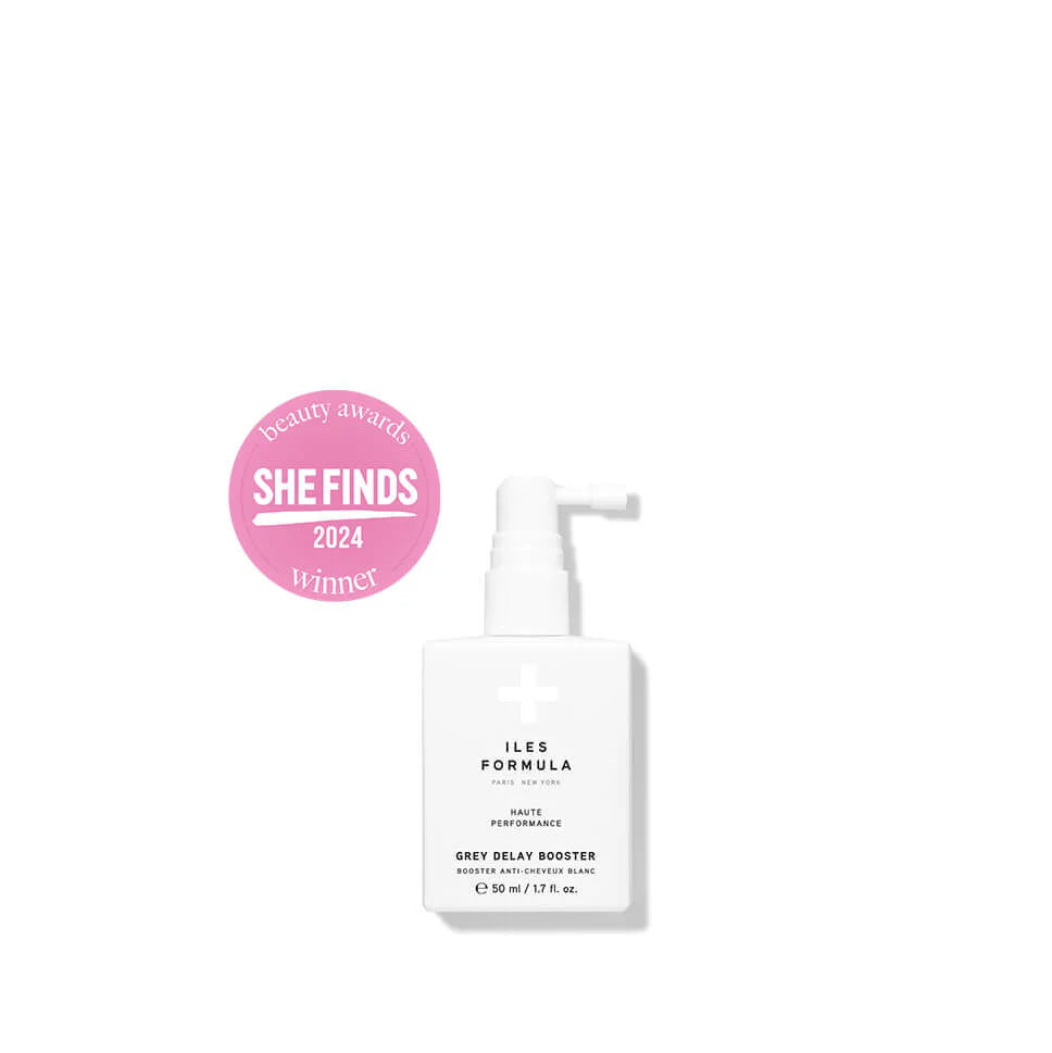 Restore your natural hair color and prevent premature greying with our Grey Delay Booster, a powerful, drug-free, botanical leave-in treatment featuring Silverfree™️ and Melanogray™️. This formula stimulates melanin production, restoring the natural hair color within one's DNA. For daily use on a wet or dry scalp. One-month supply.