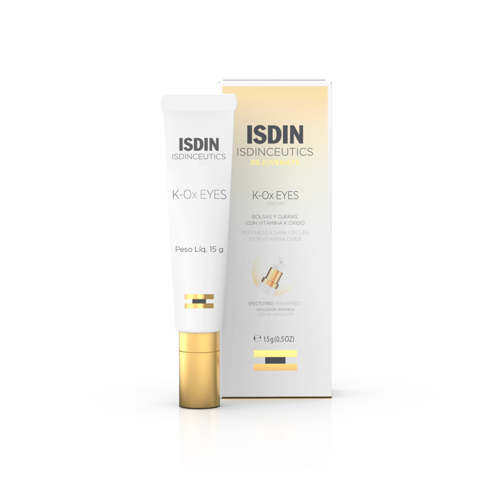 K-Ox Eyes Countour Cream by ISDIN is a specialized eye contour cream designed to target puffiness, under-eye bags, and dark circles. The formula features Vitamin K oxide, which helps diminish the appearance of dark circles and restore brightness to the eye area. Additionally, it includes Haloxyl and Eyeliss, a combination of ingredients that reinforce firmness, even skin tone, and reduce puffiness. The product also contains hyaluronic acid to hydrate and restore elasticity. It features a cooling ceramic applicator that helps refresh the skin during application. Visible improvements can often be seen in just 28 days, with significant results after two months of consistent use.